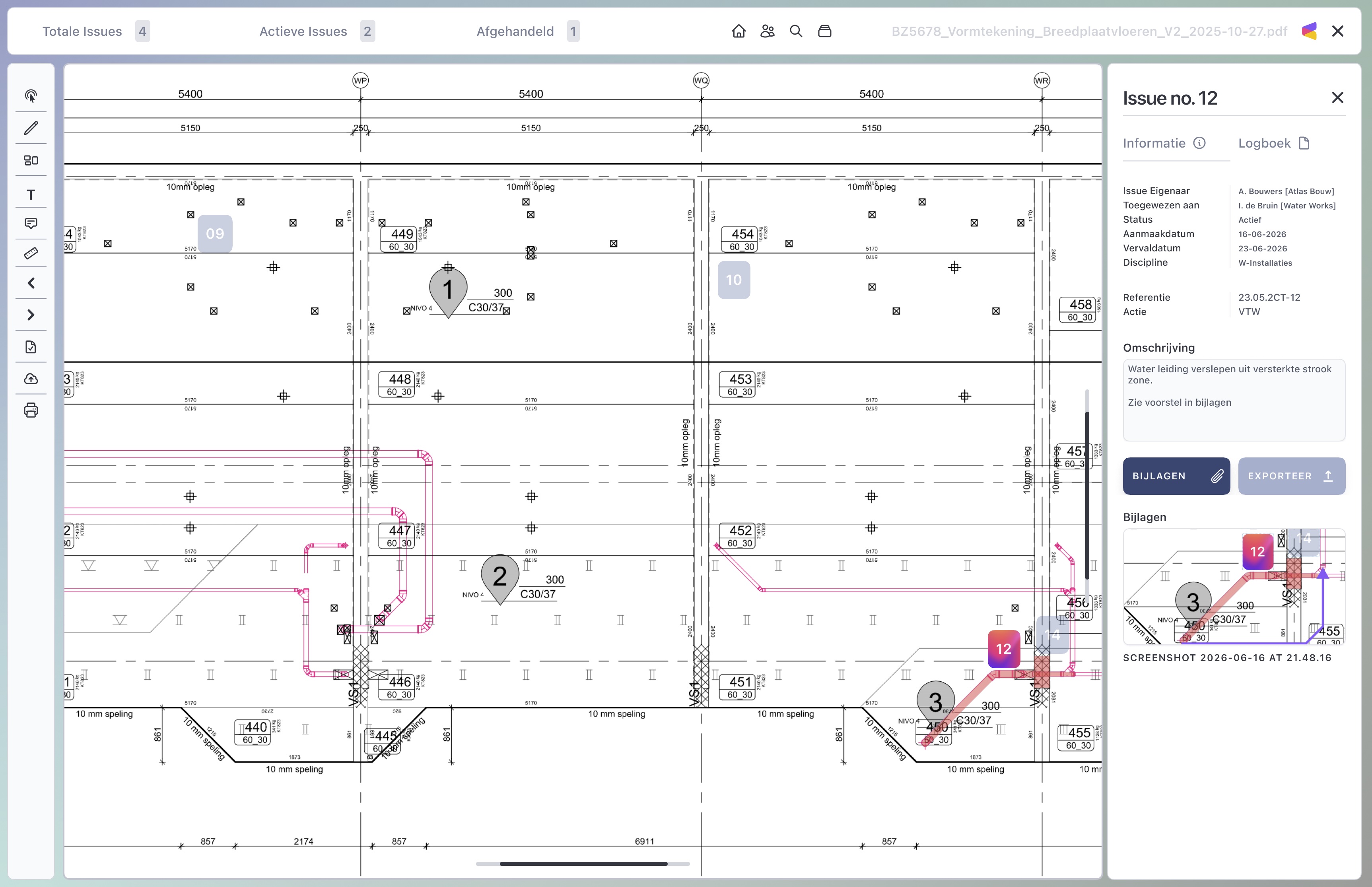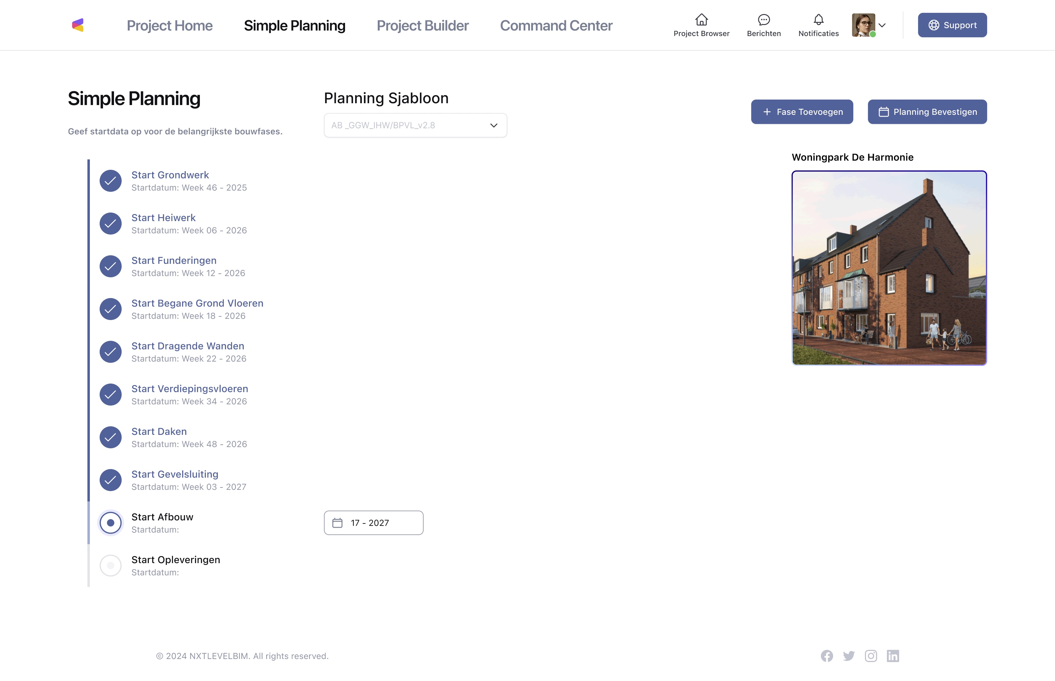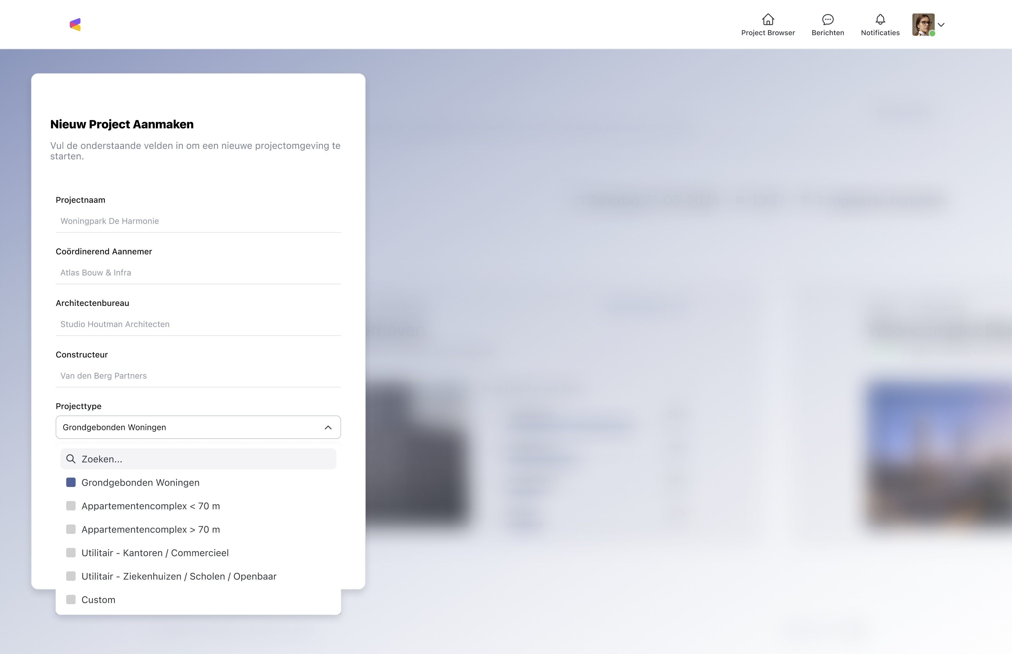 Ervaar ons prototype dat het volledige bouwproces, van ontwerp tot oplevering, samenbrengt. Eén omgeving waarin planning, communicatie en documentbeheer naadloos geïntegreerd worden voor optimaal overzicht.